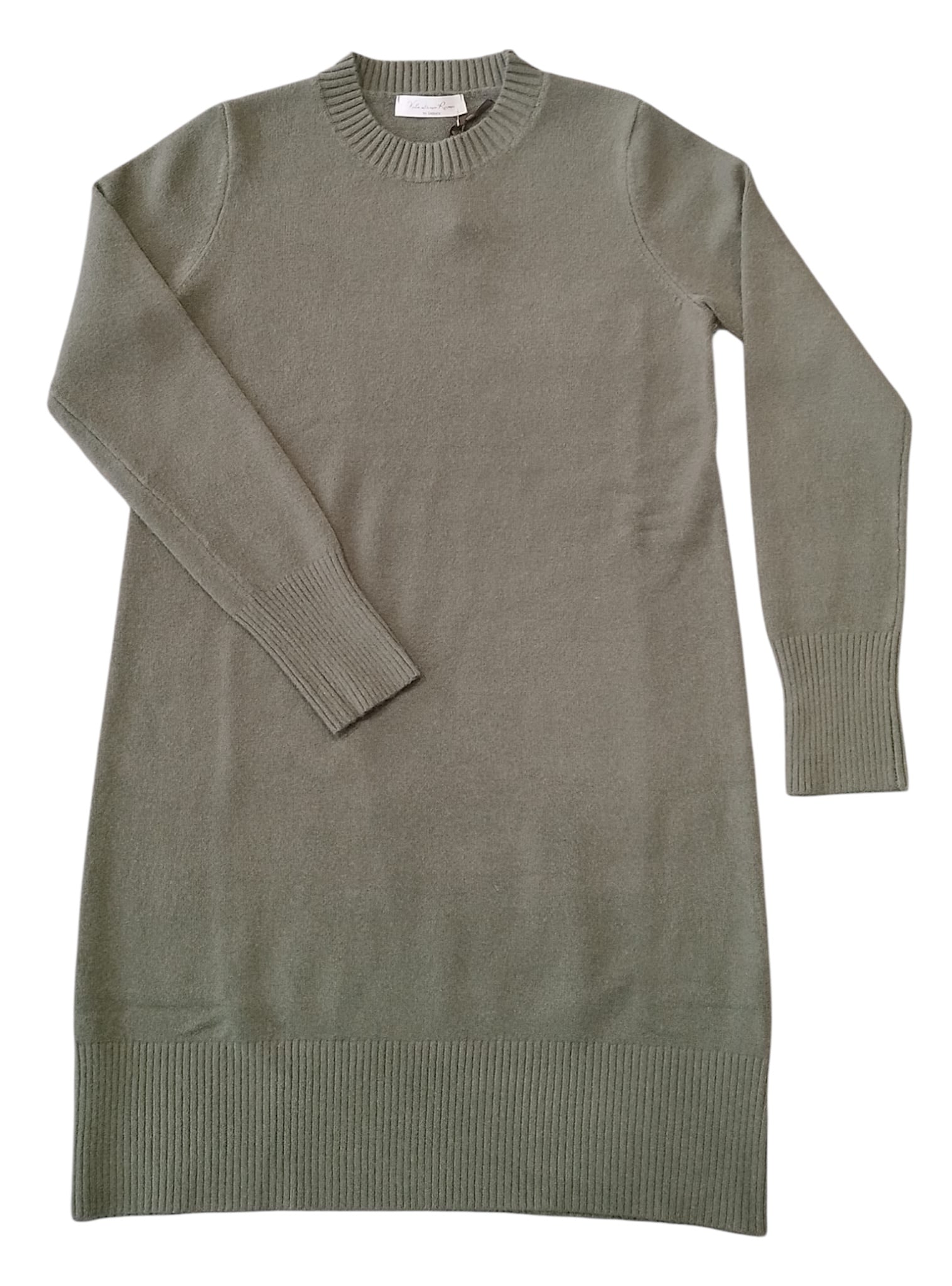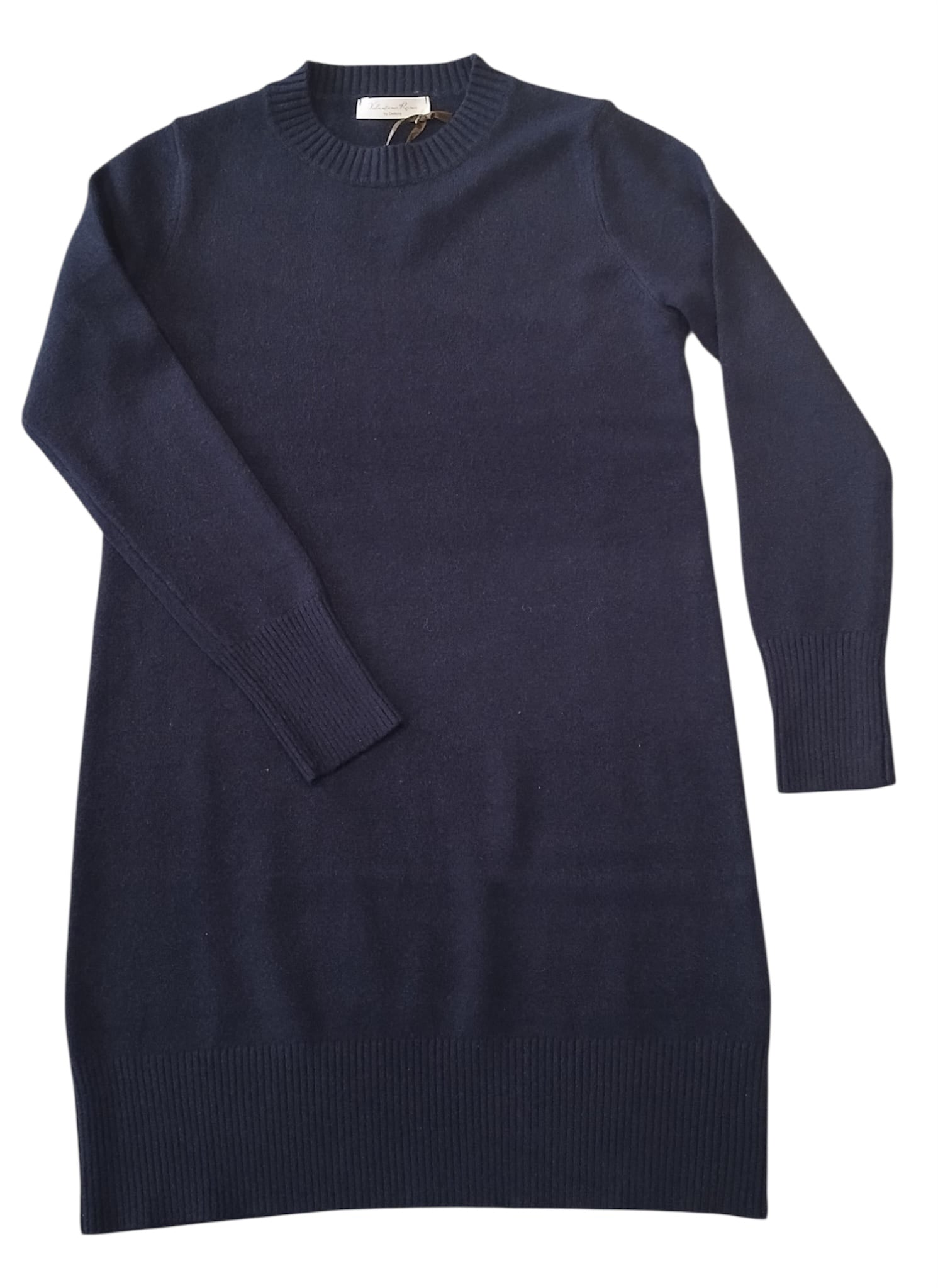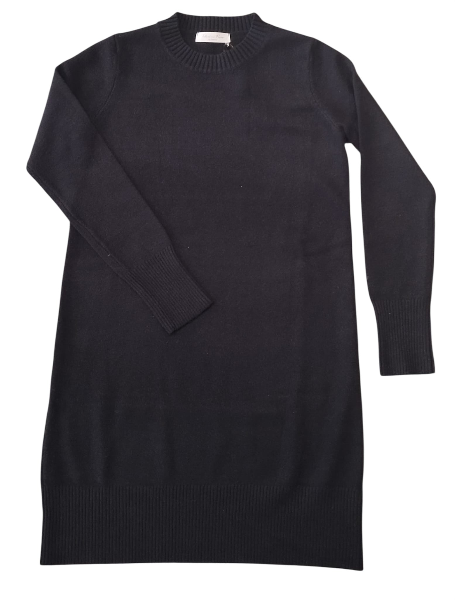 Abito lungo a girocollo, manica lunga,dritto, lunghezza ginocchio