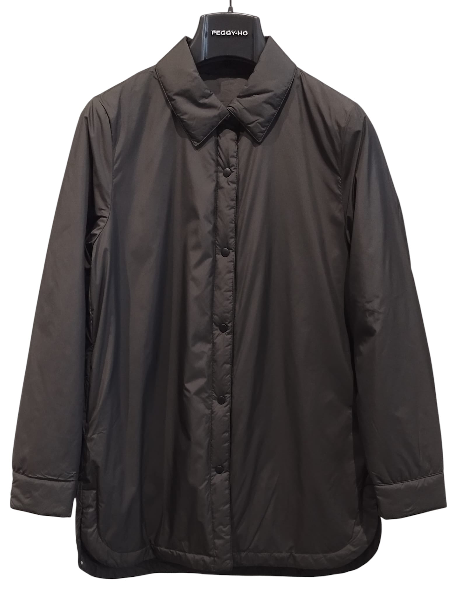 Camicia lunga in tela vela con imbottitura sintetica, bottoni a pressione con tasche laterali