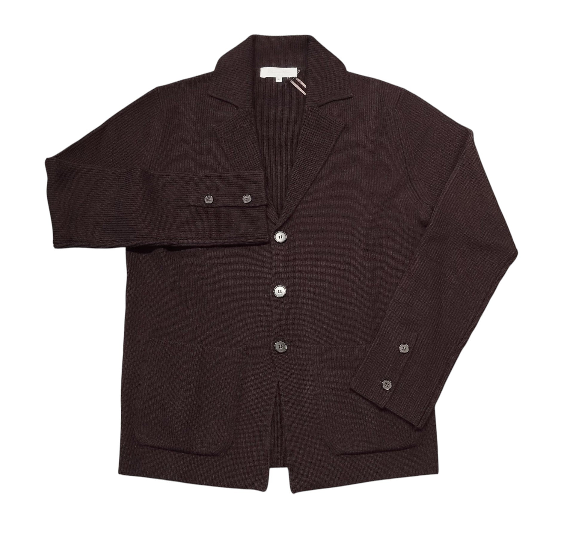 Cardigan uomo a costa inglese, collo a giacca, bottoni sul polso con tasche applicate