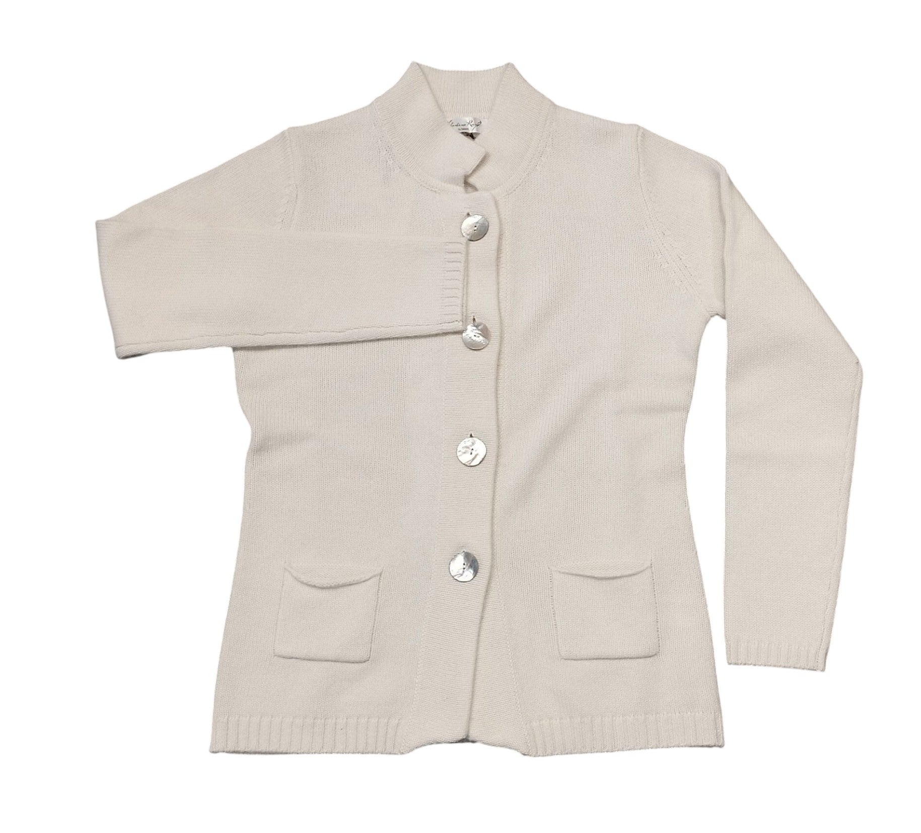 Composizione: 100% cashmere Giacchina con bottoni in madreperla leggermente sciancrata , veste giusta Debora indossa la taglia M