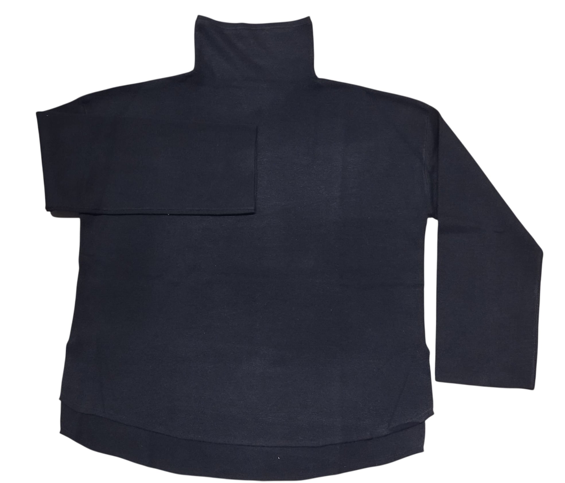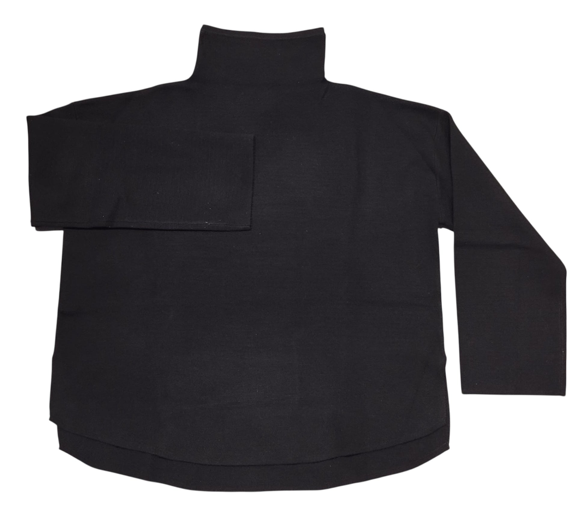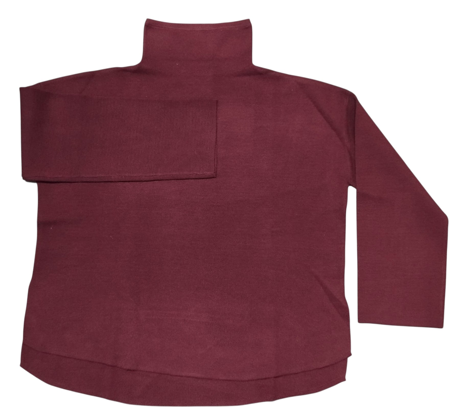 Maglia punto milano, vestibilita morbida con collo alto lupetto Debora indossa taglia S