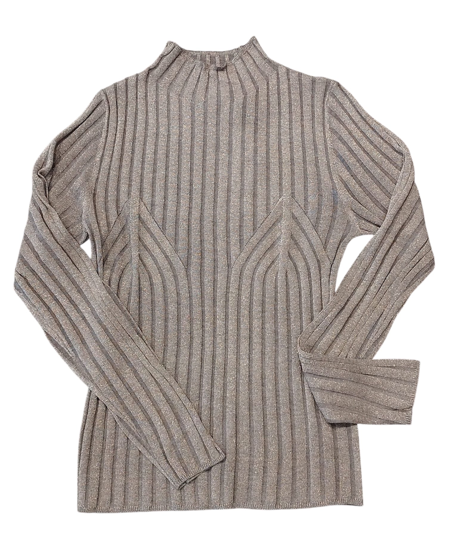 Lupetto a costa piatta, manica lunga con calzatura sul seno con fili di lurex all’interno