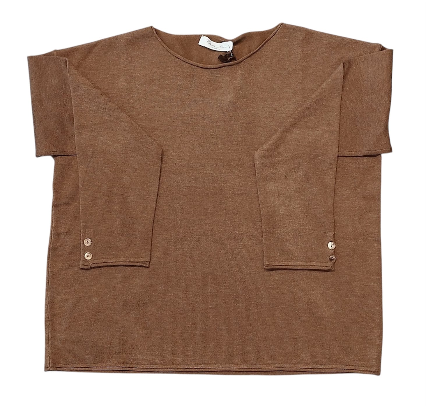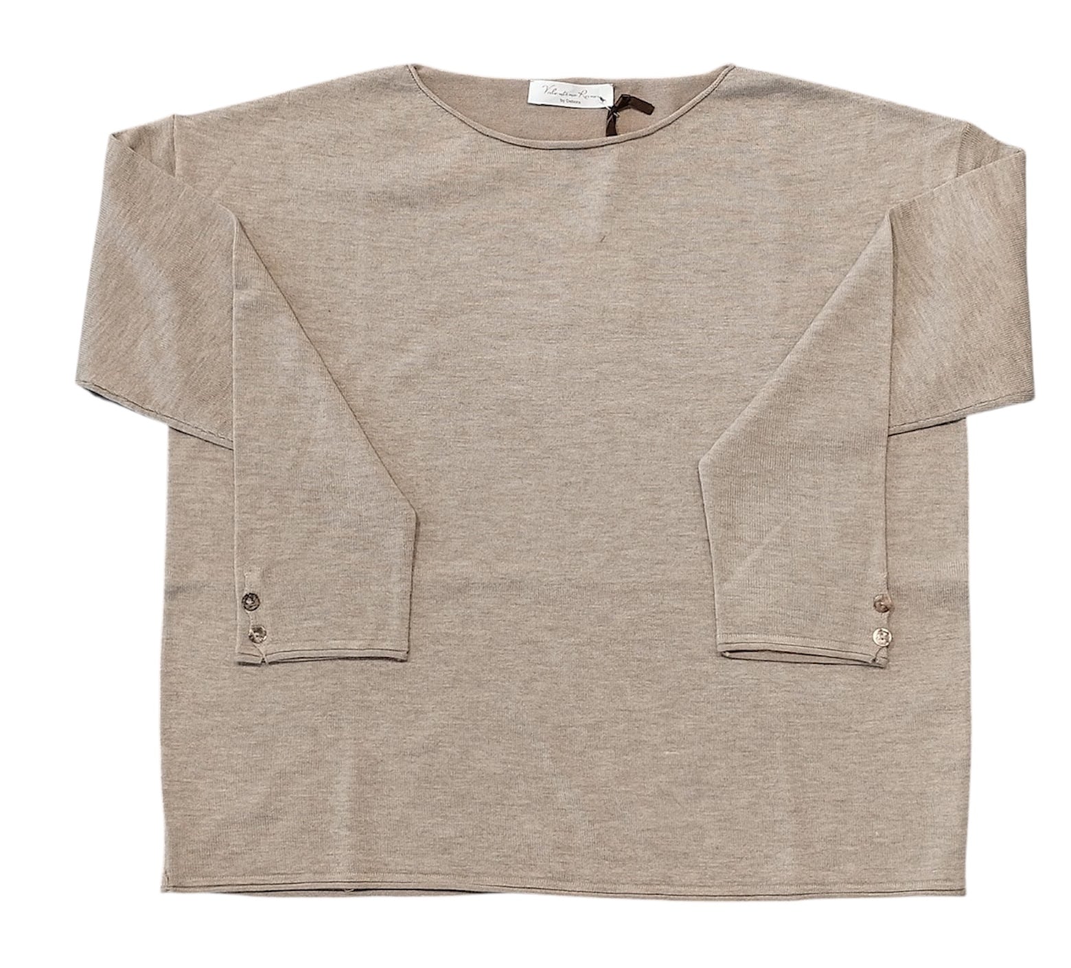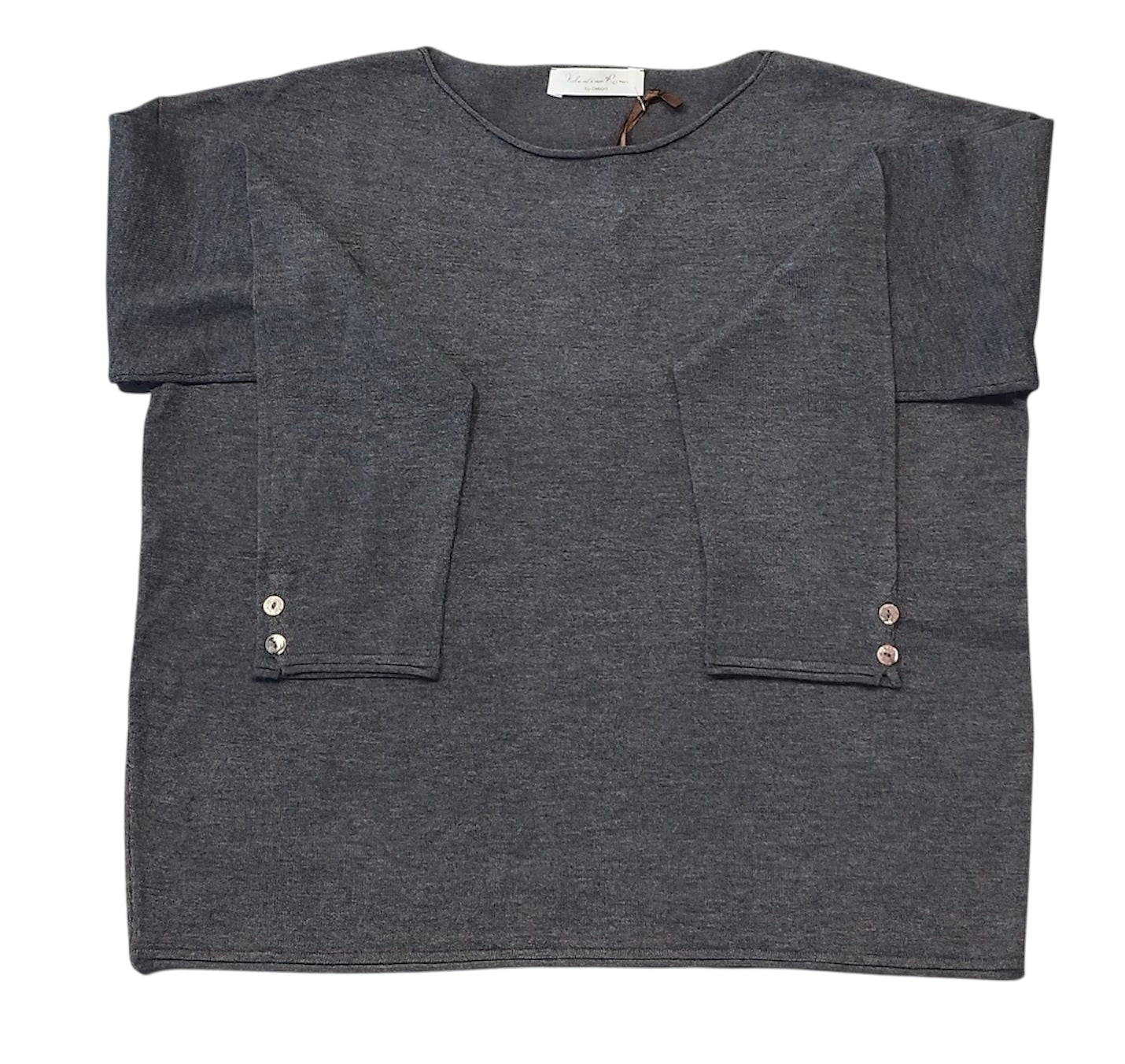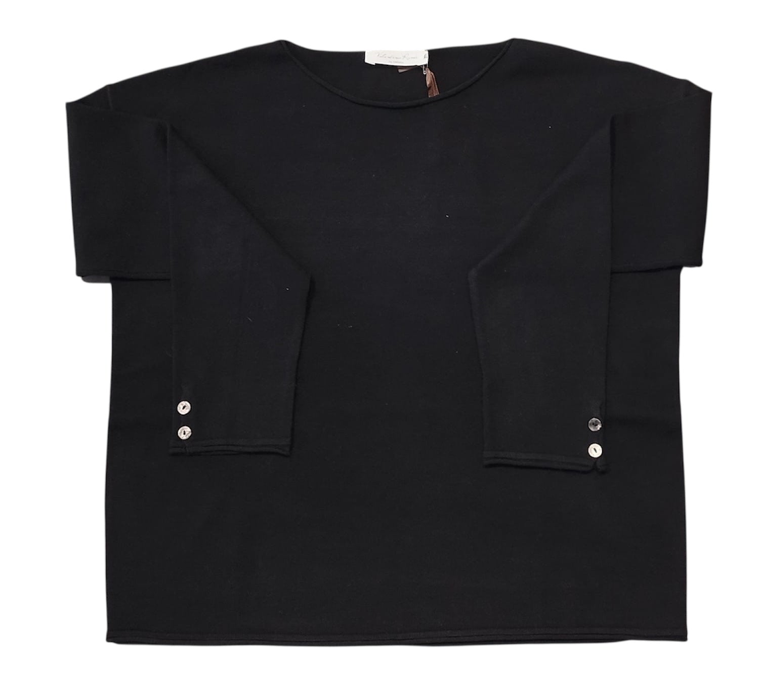 Maglia a girocollo a scatoletta con 2 bottoni sulle maniche. Debora indossa taglia S
