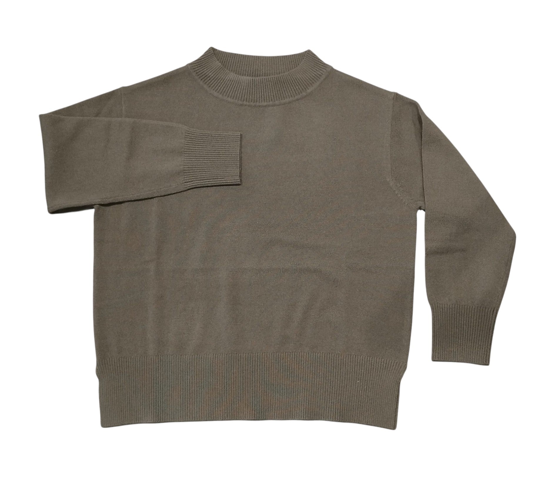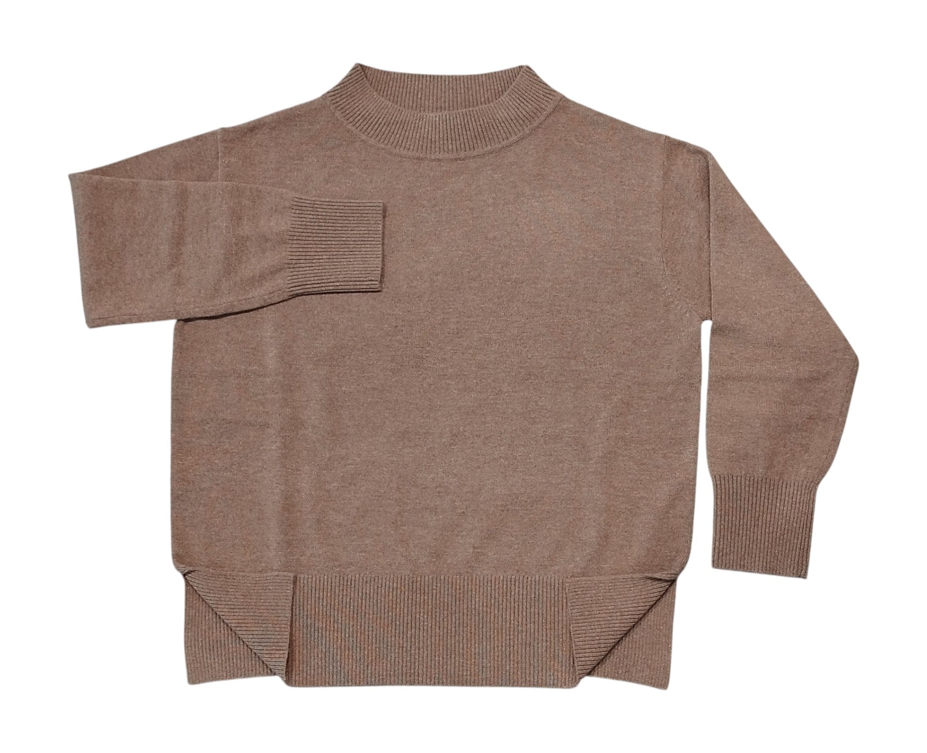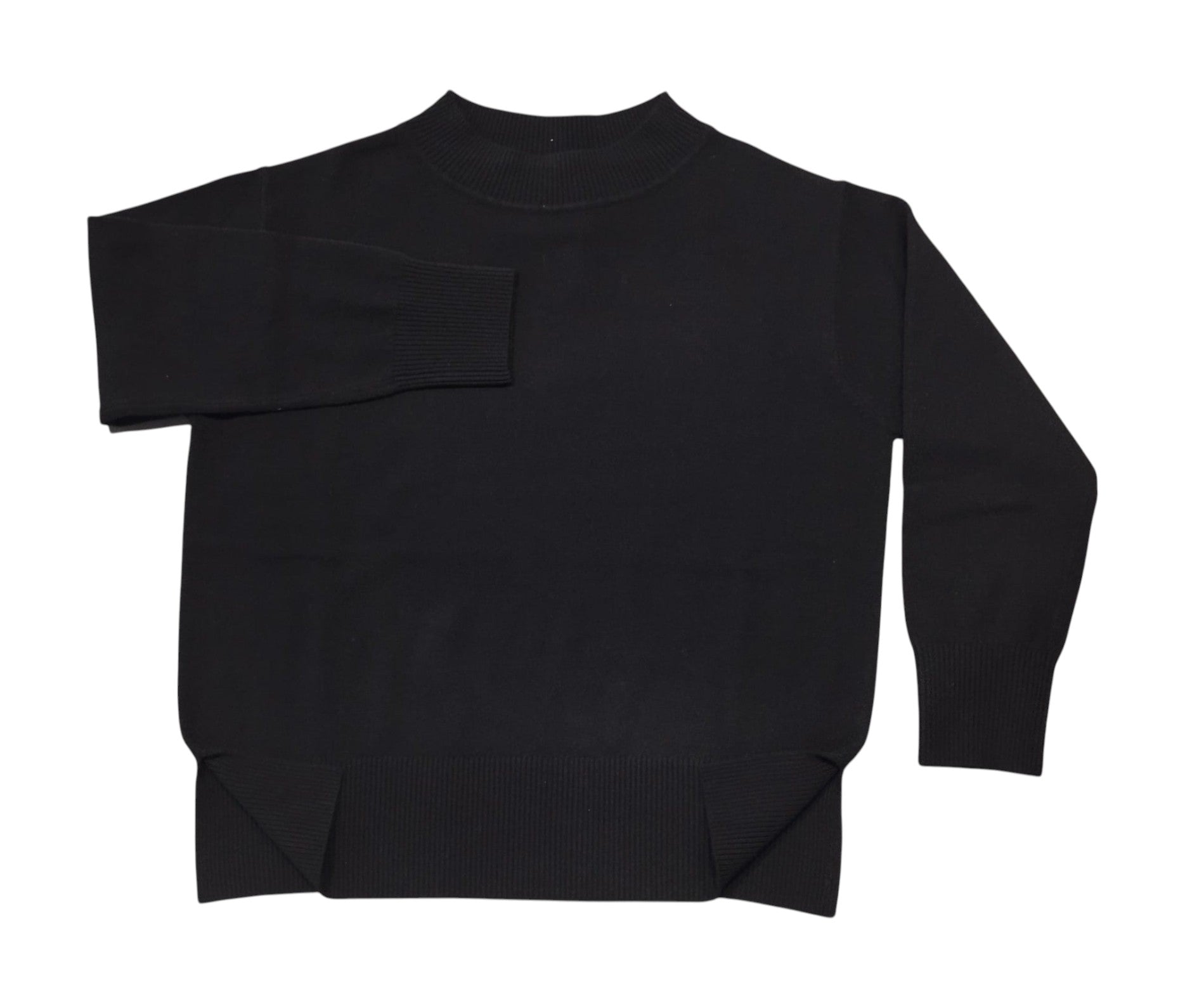 Maglia a girocollo chiuso a scatoletta, spacchi laterali, costine sui polsi, fondo e sul collo