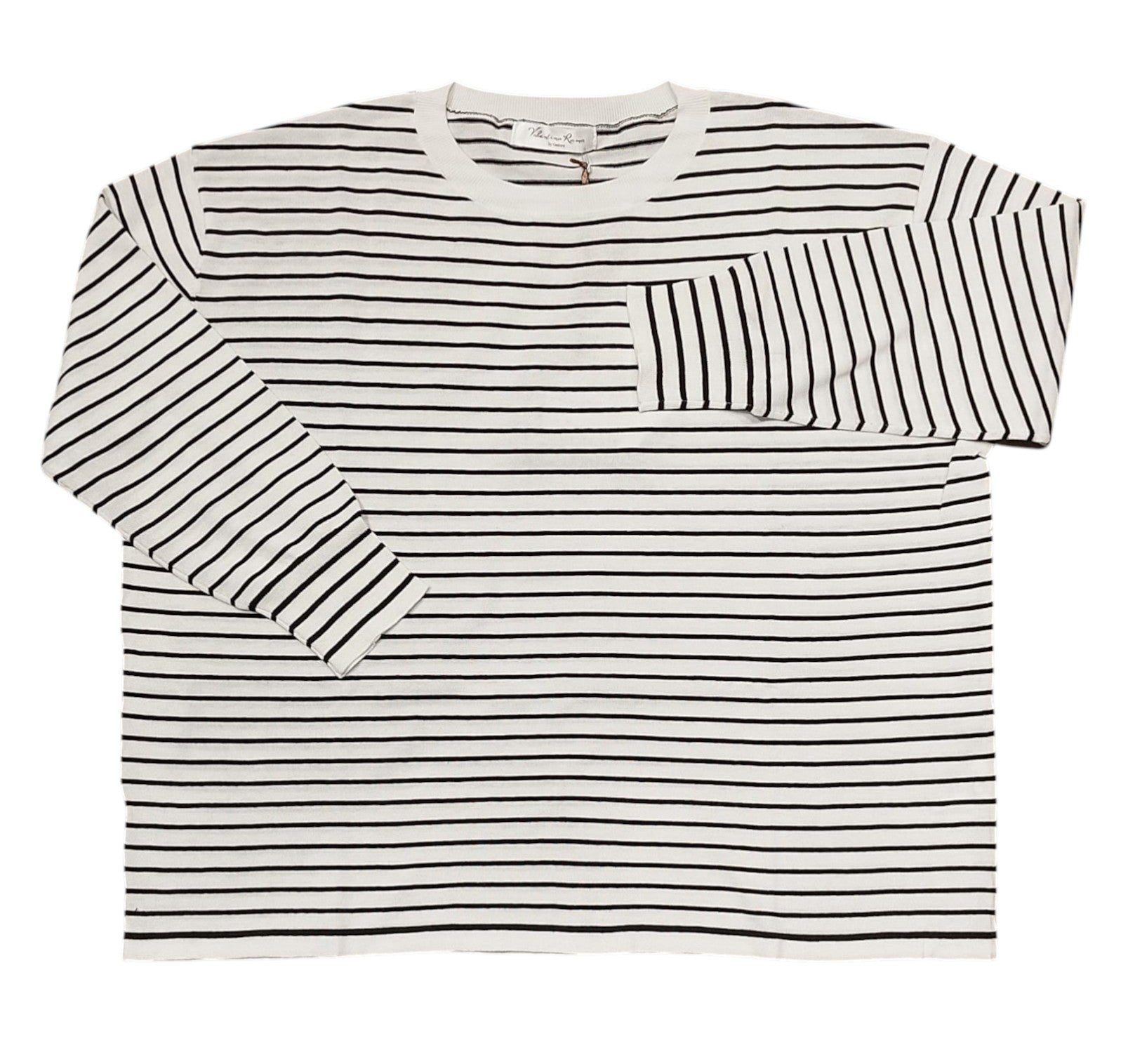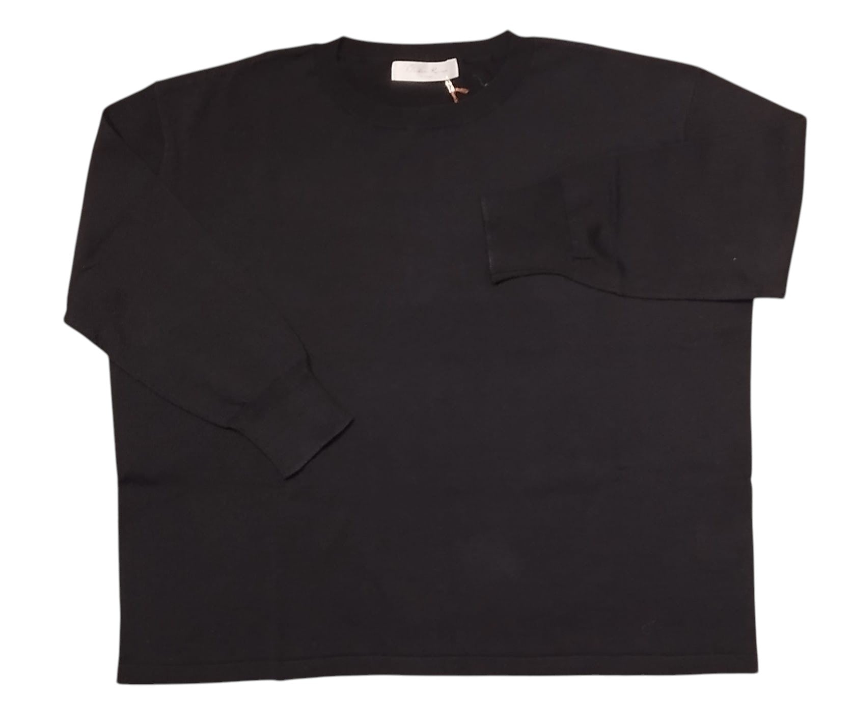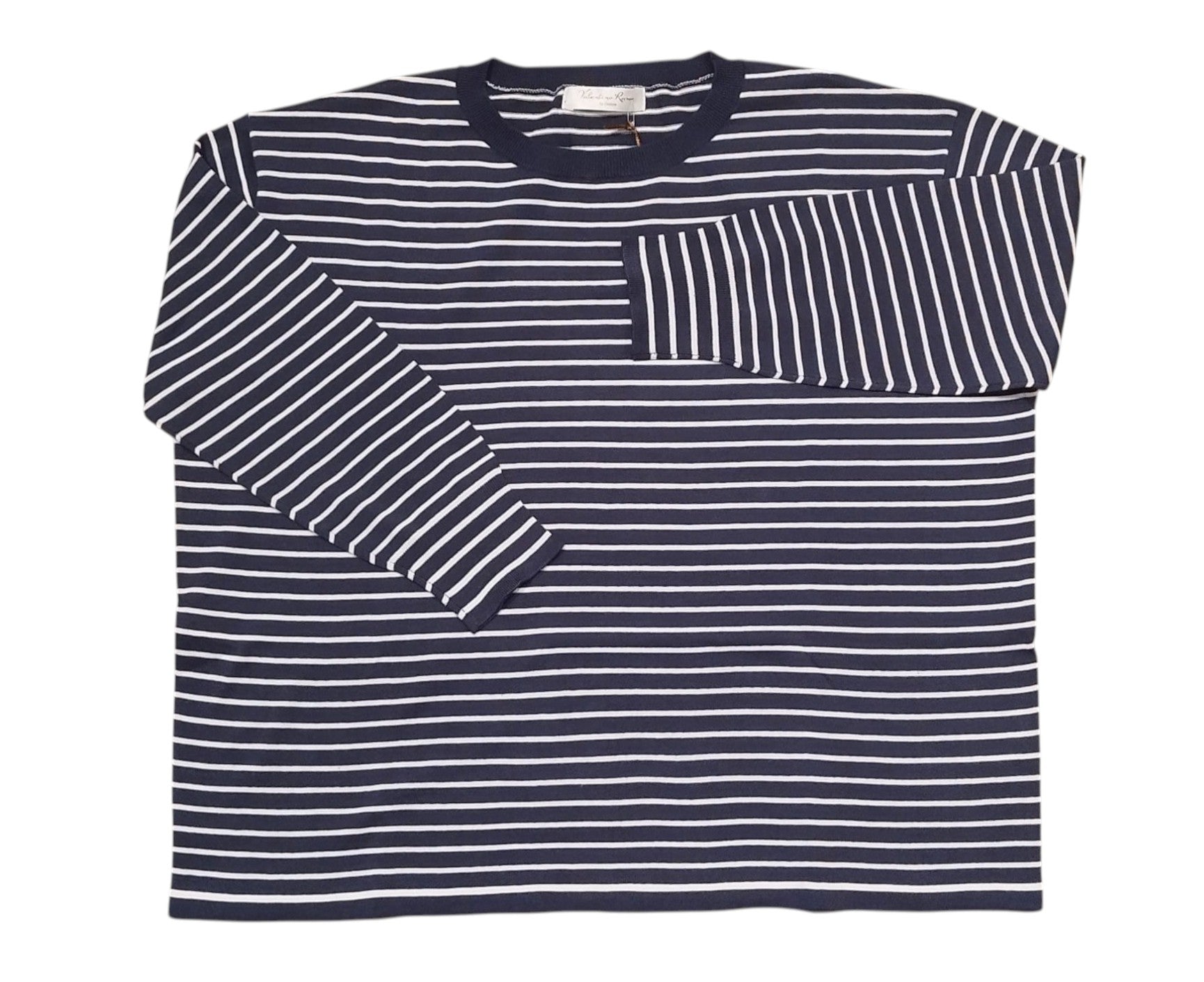 Maglietta in filo di cotone, a scatola, girocollo, manica a 3/4. Debora indossa la taglia 38