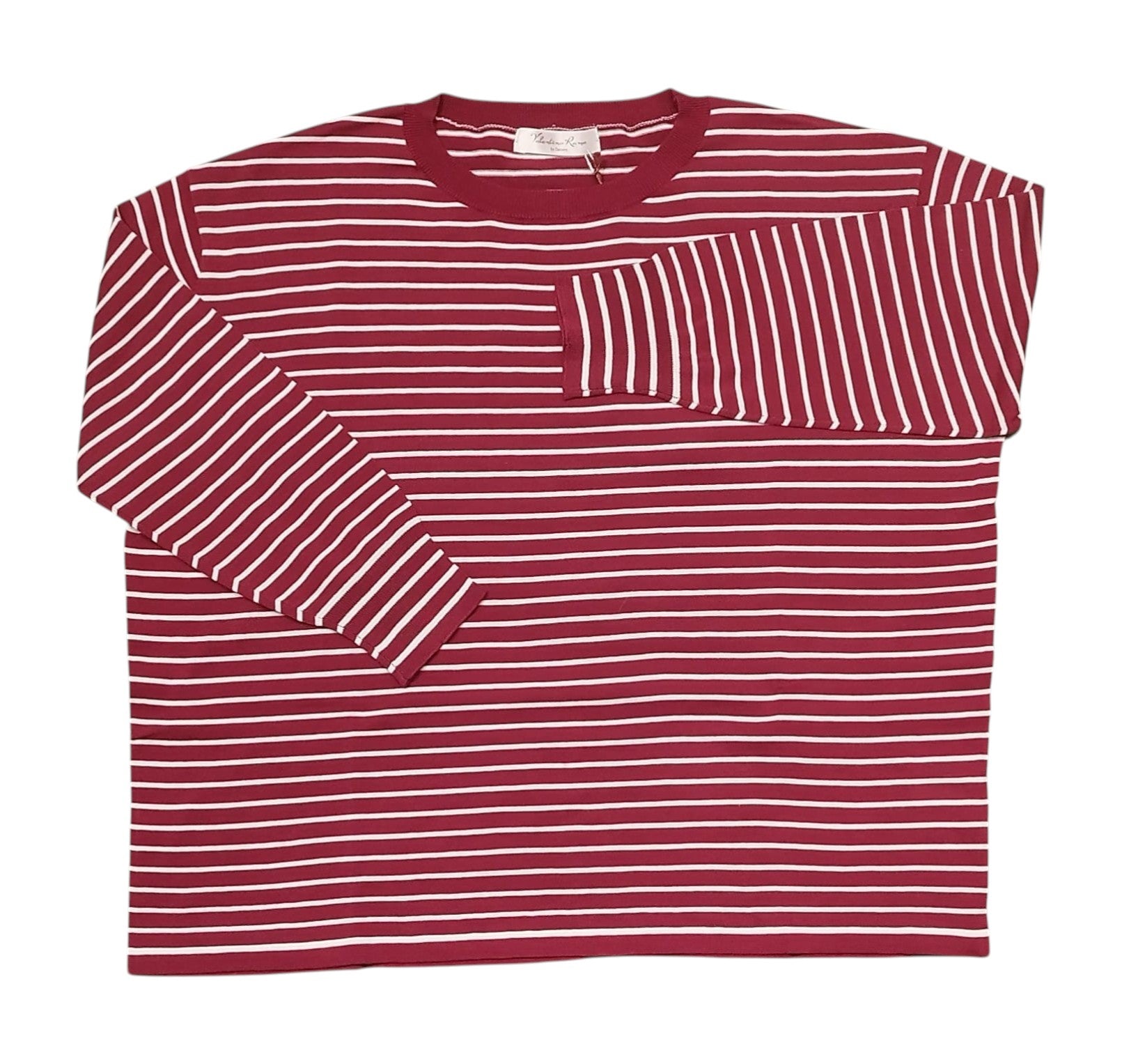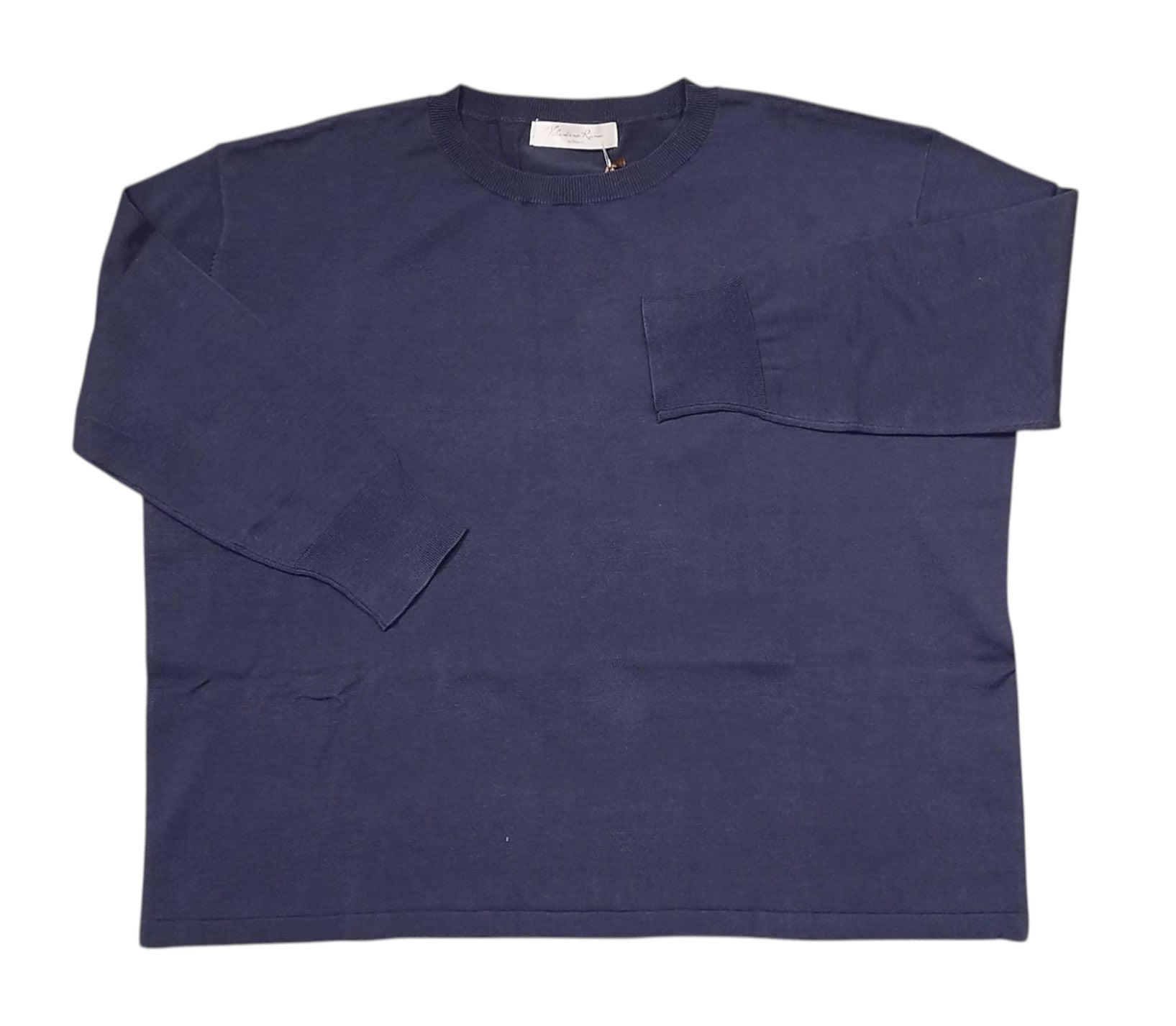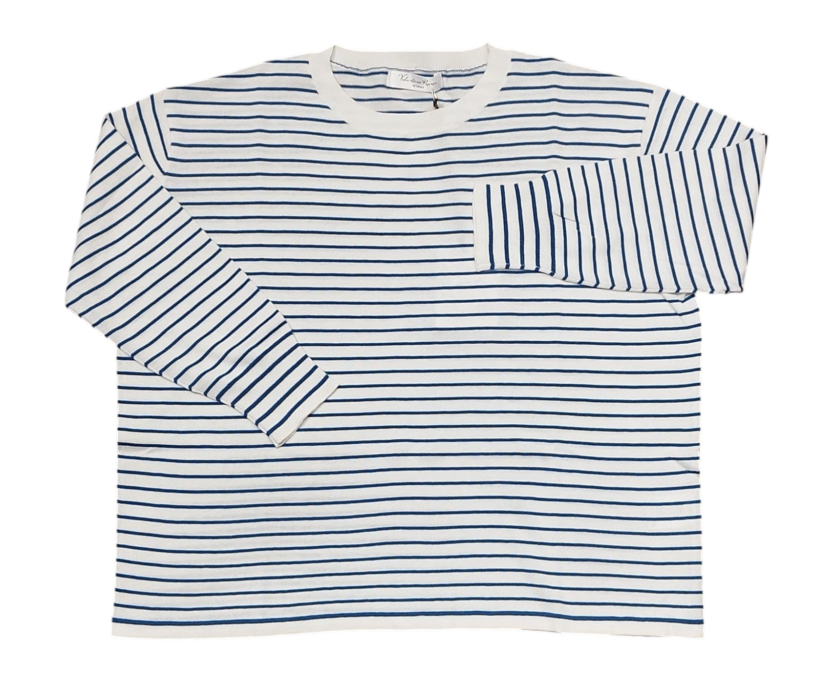Maglietta in filo di cotone, a scatola, girocollo, manica a 3/4. Debora indossa la taglia 38
