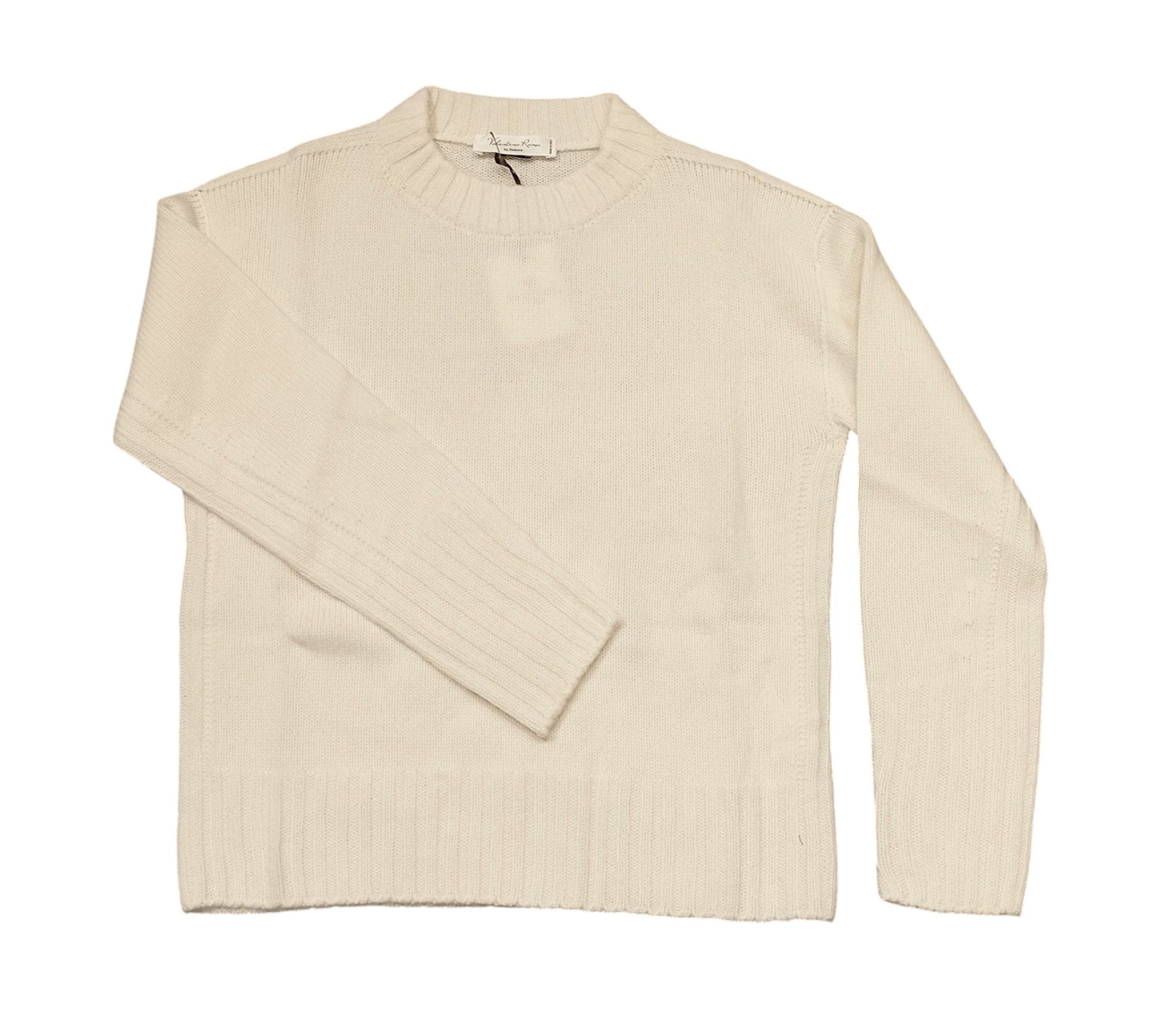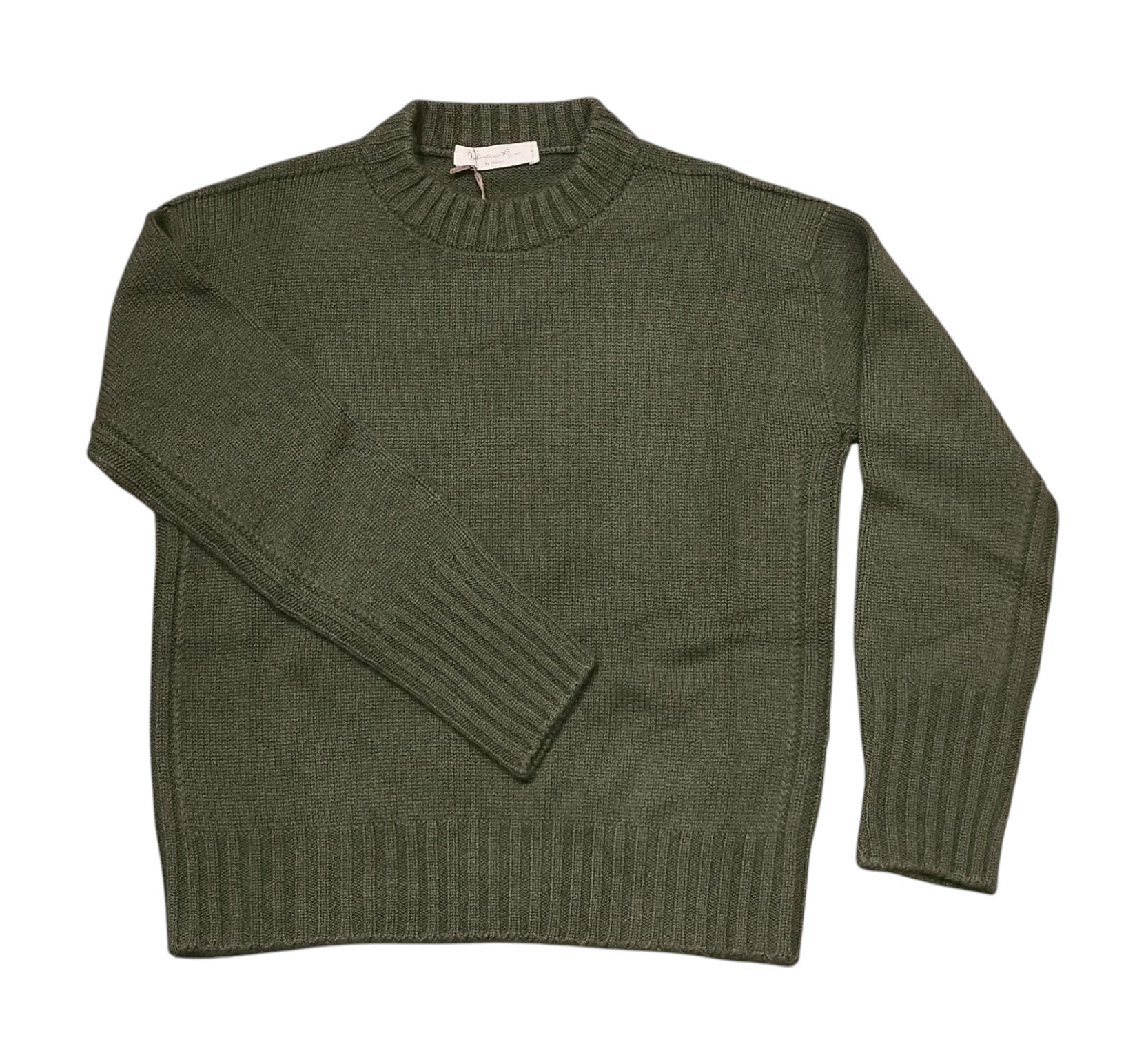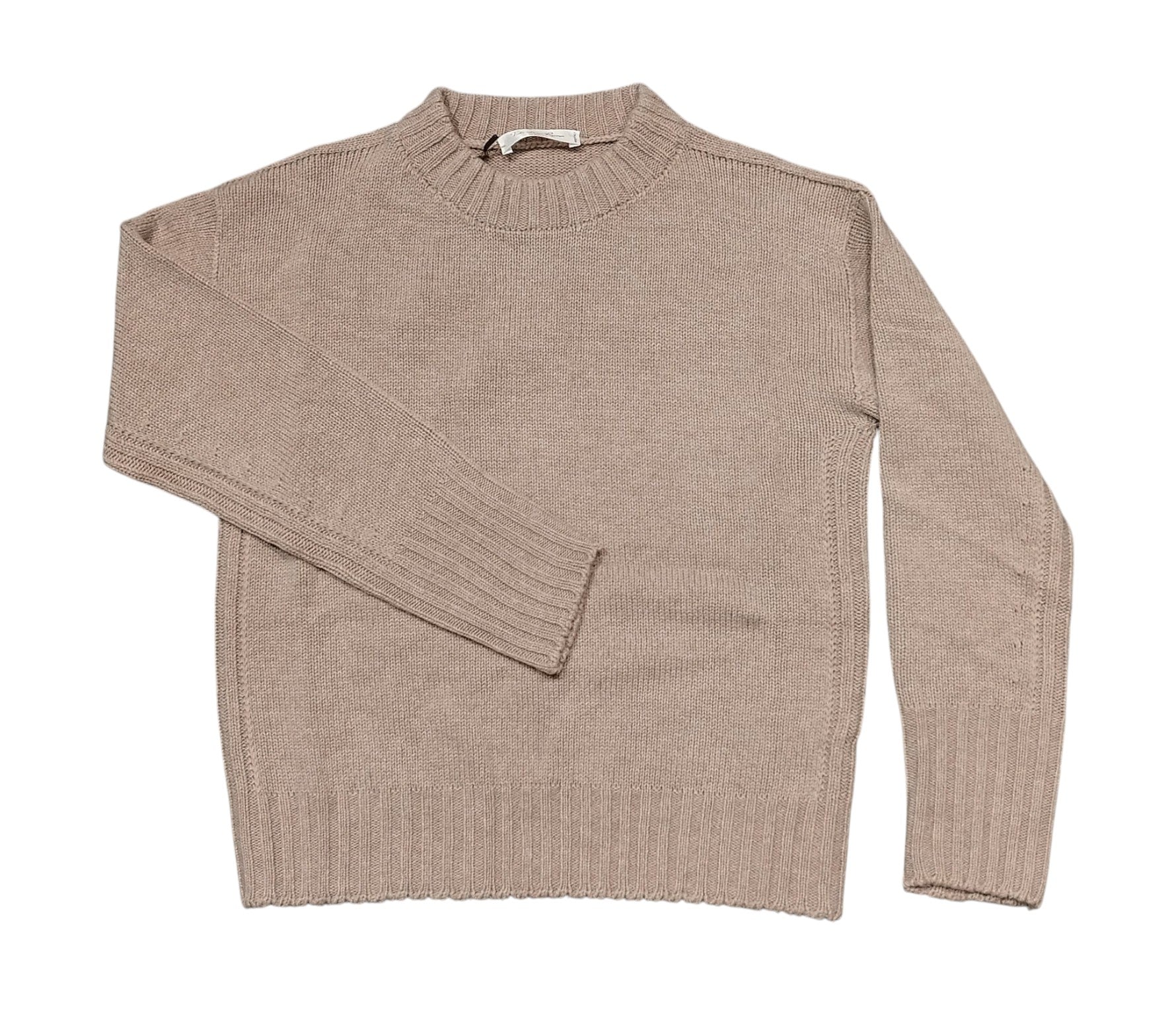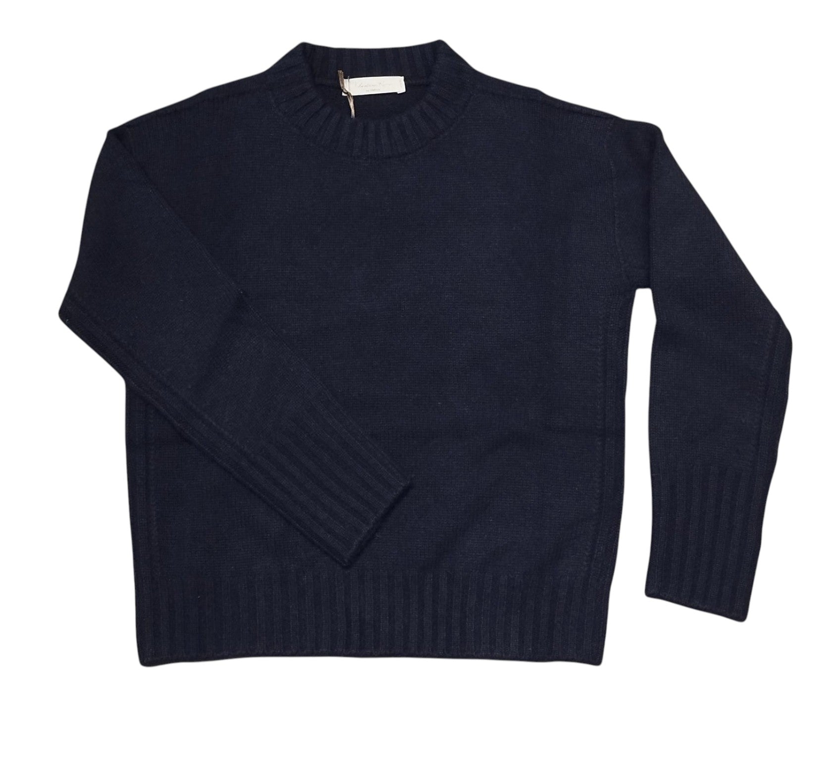 Maglia in puro cashmere a girocollo con costa sui bordi laterali, fianco e manica