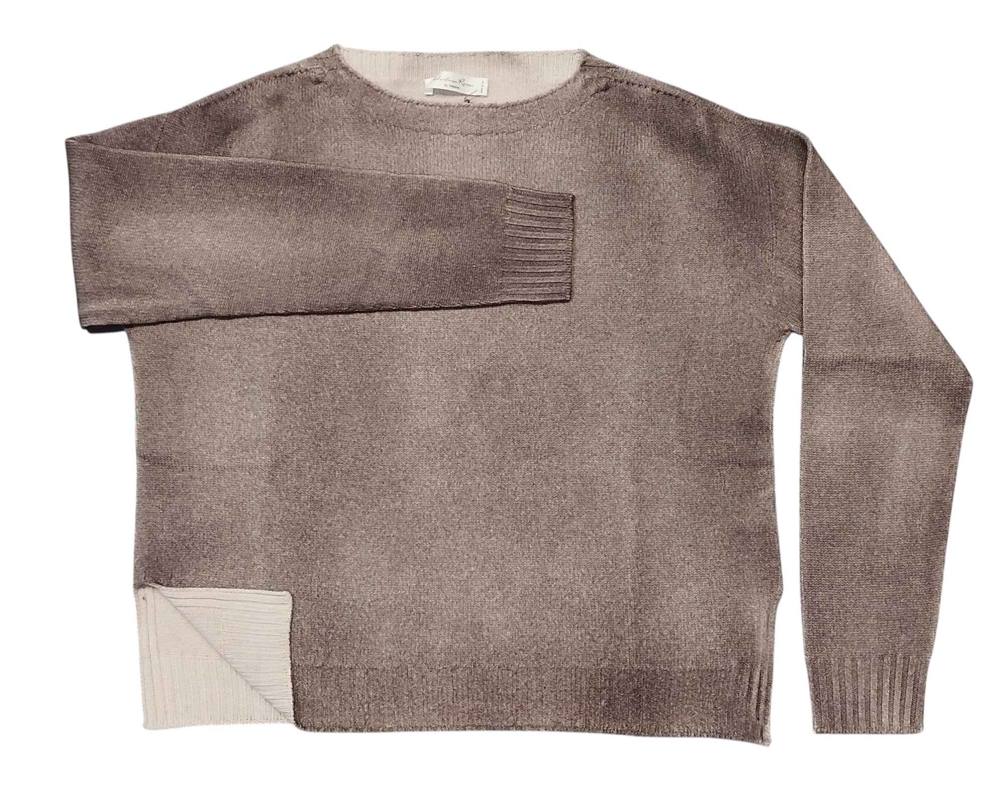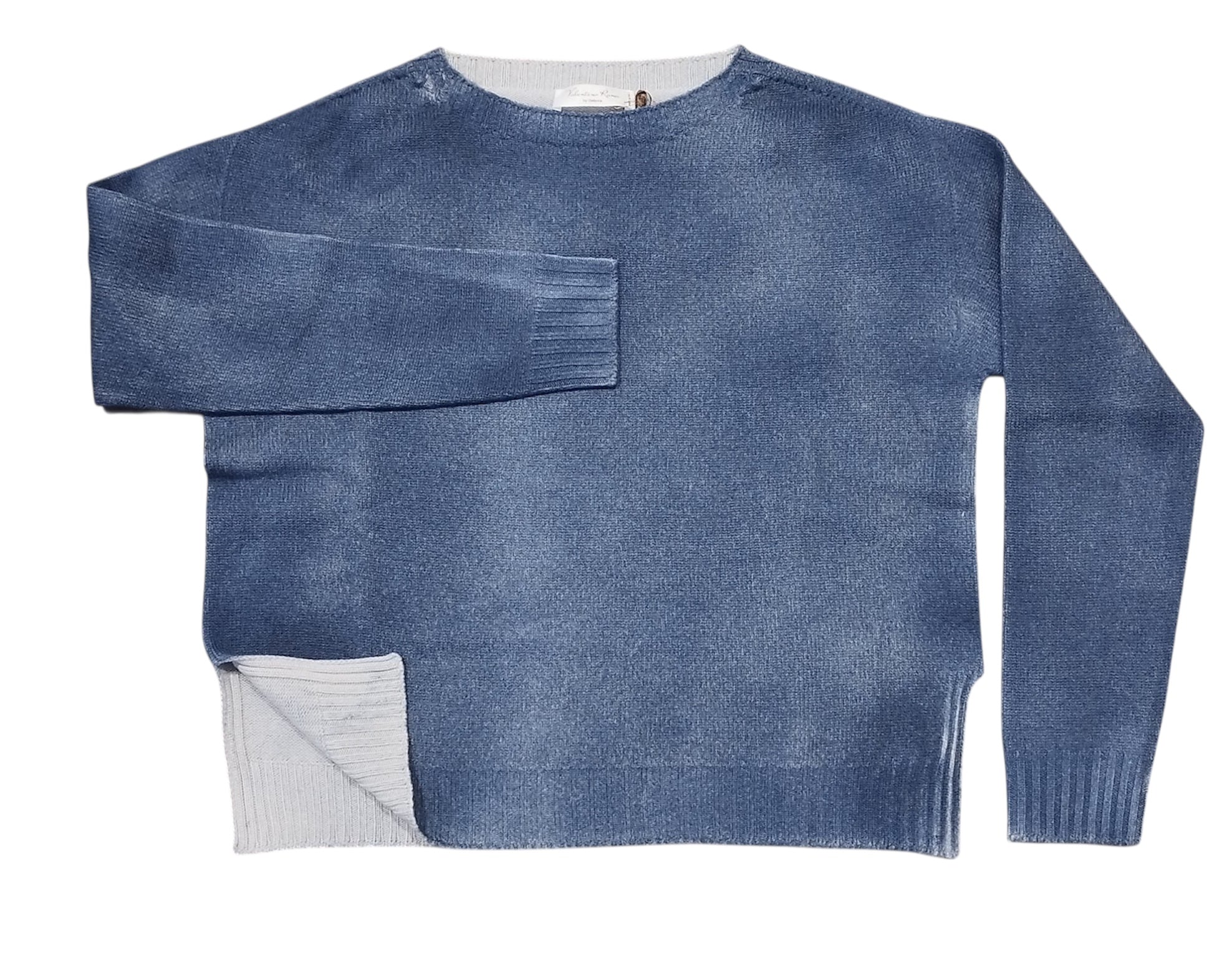 Maglia girocollo manica lunga a scatoletta con spacchi laterali ogni maglia viene spruzzata a mano e dipinta una per una e le sfumature sono la caratteristica di questo modello
