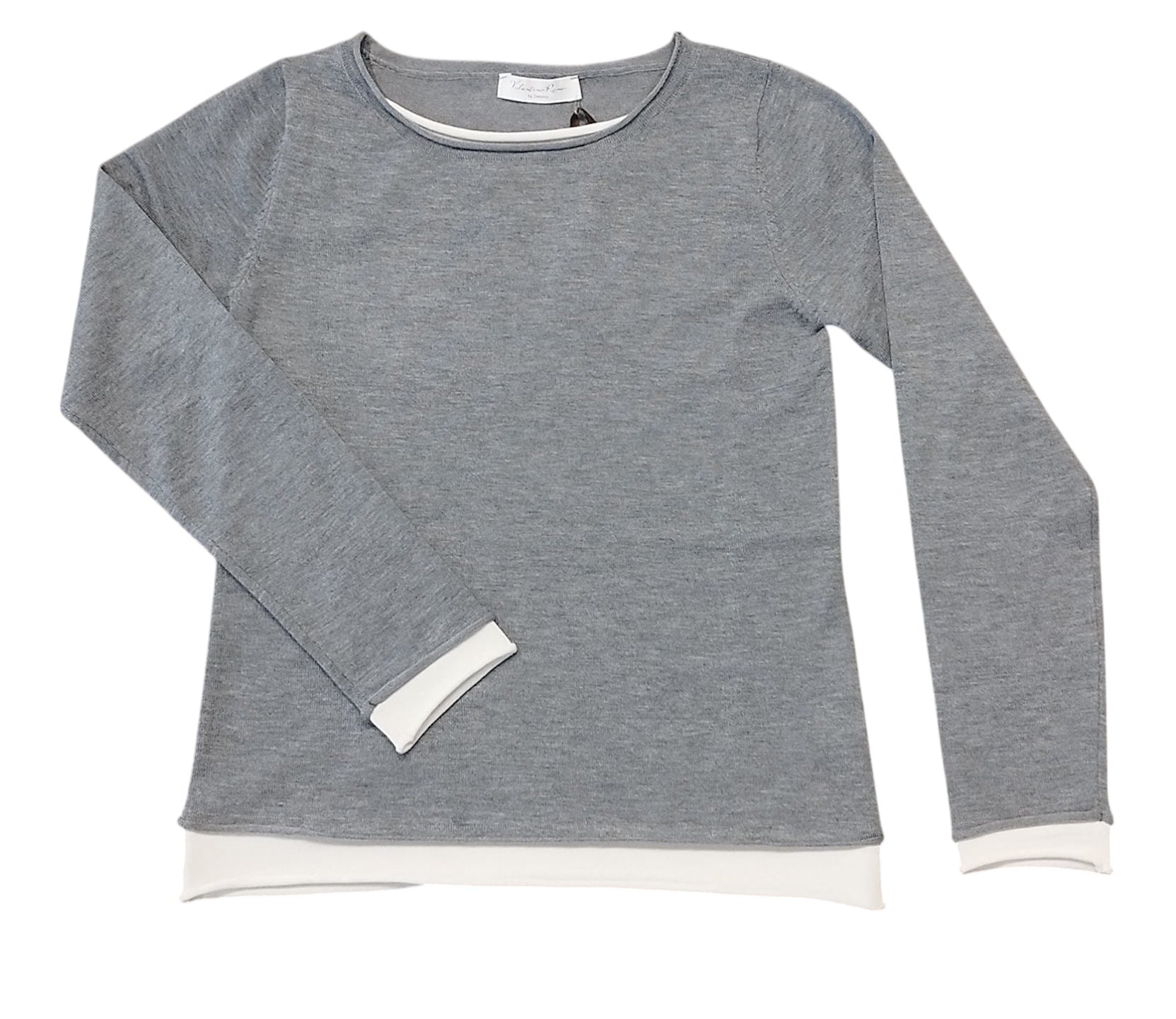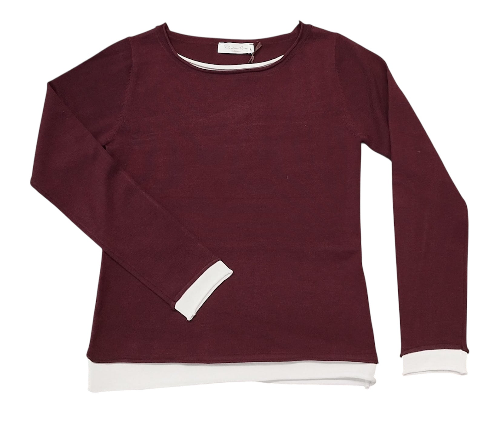 Maglia manica lunga a girocollo, contrasto di colore sul collo, polso manica e fondo, vestibilità asciutta
