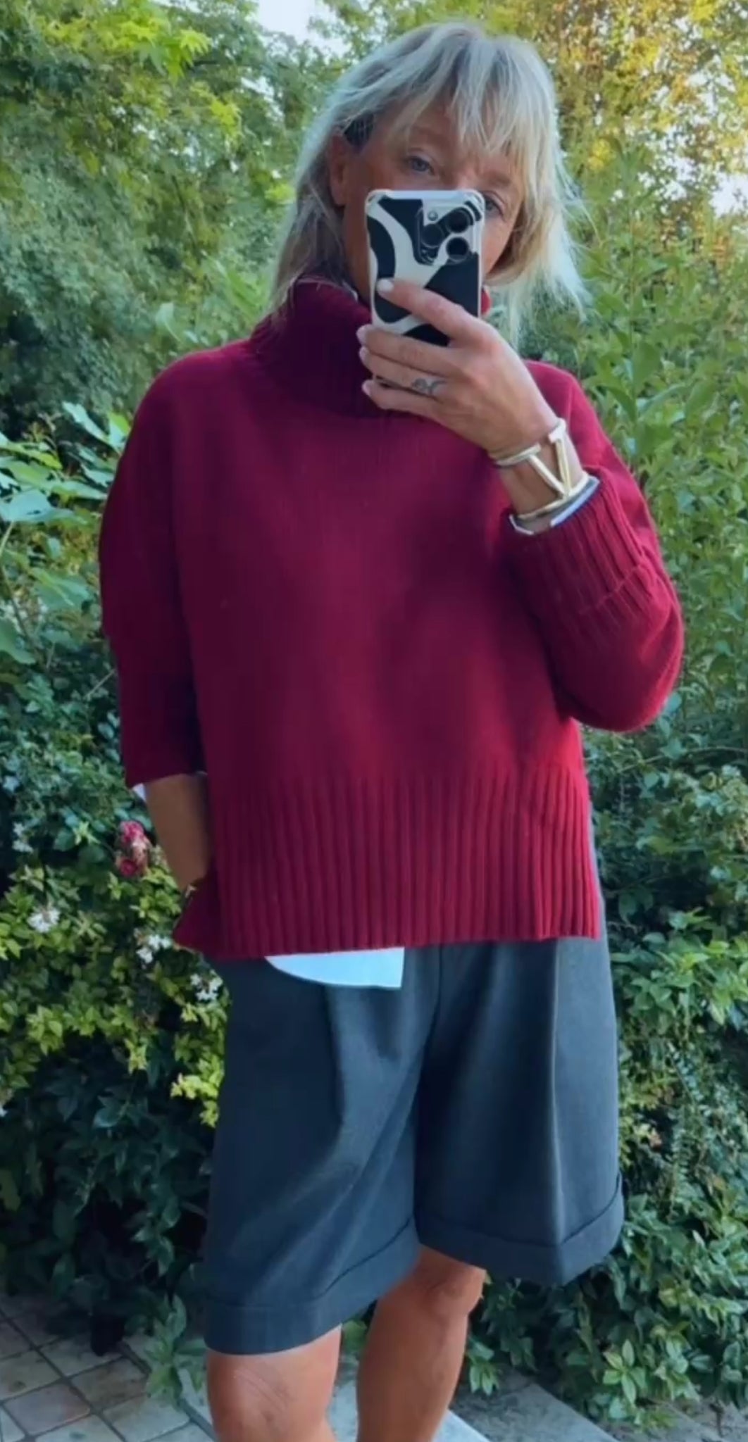 Dolcevita in puro cachemire con coste alte sulla polso a scatola con spacchi laterali è una delle maglie più pazzesche che abbiamo the indossa la taglia prima