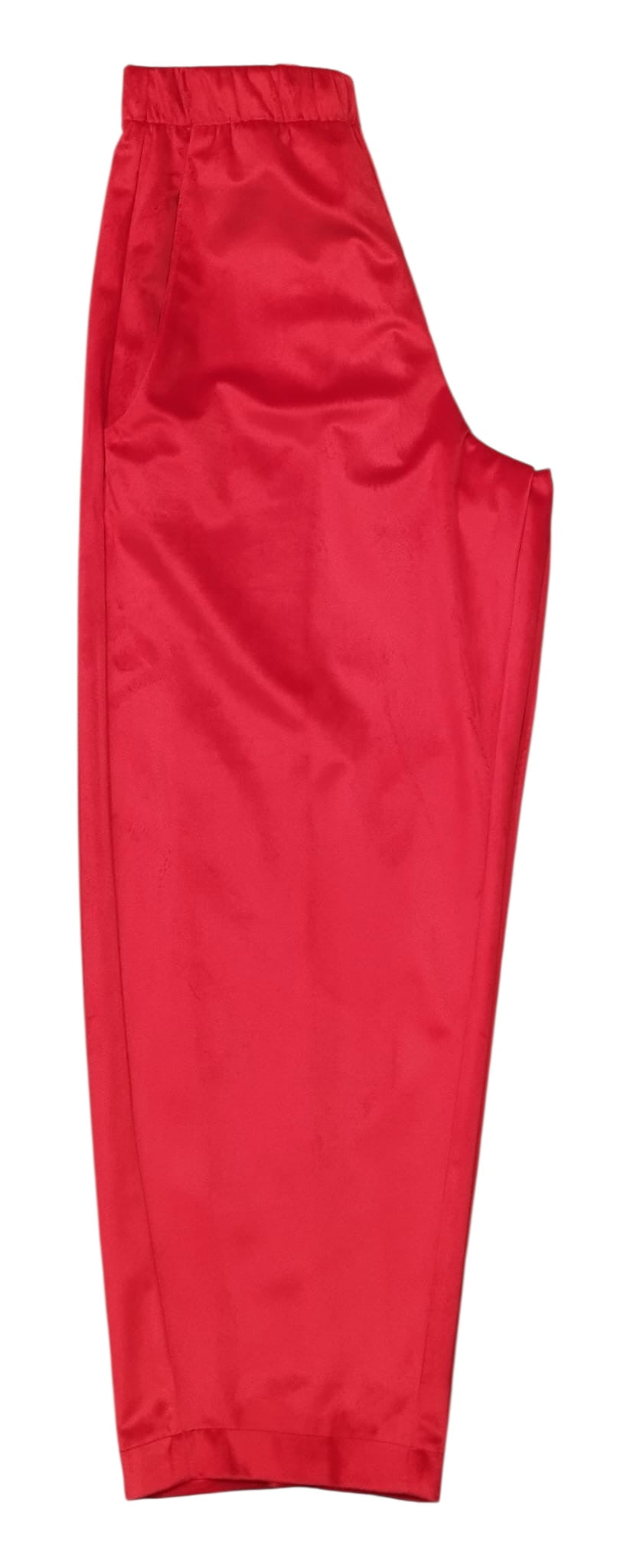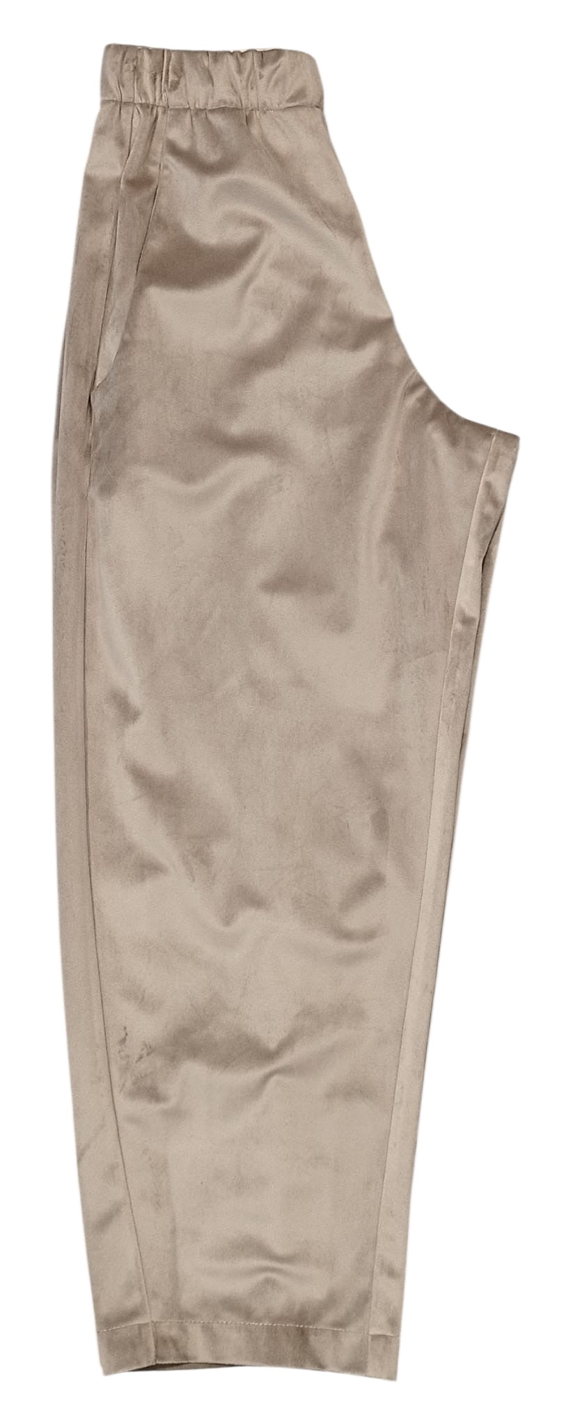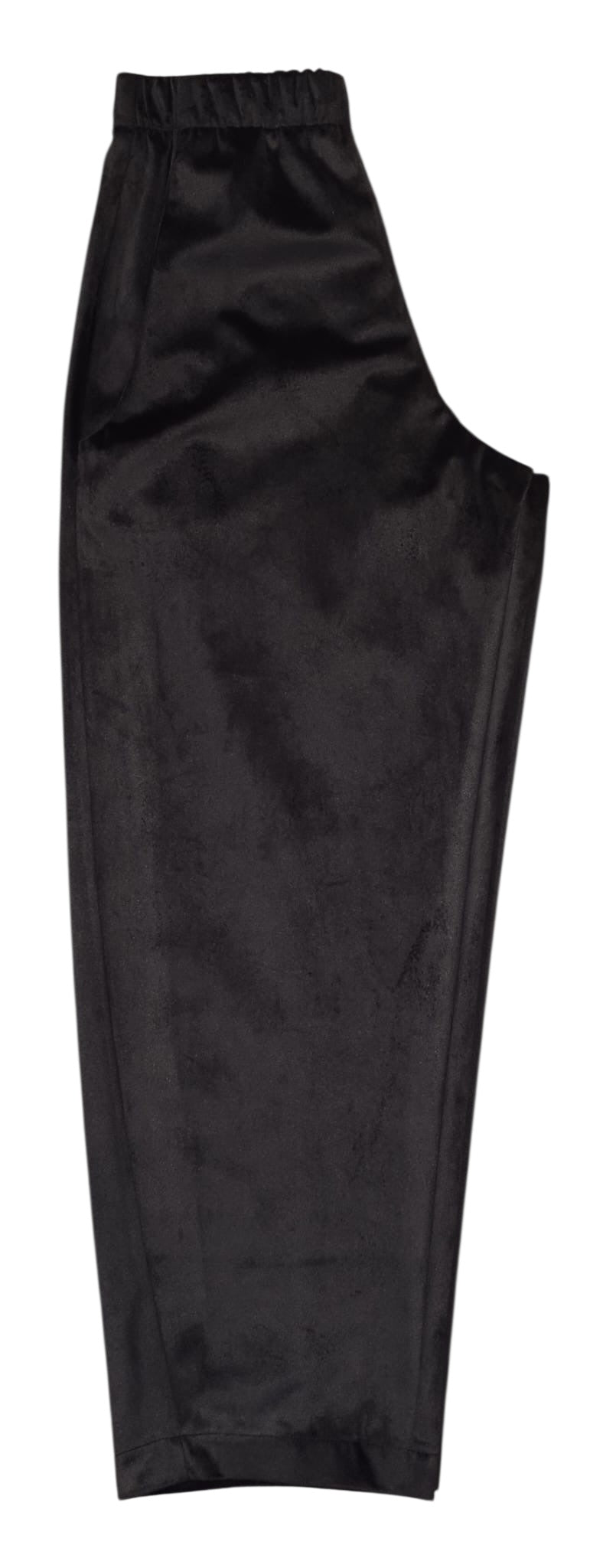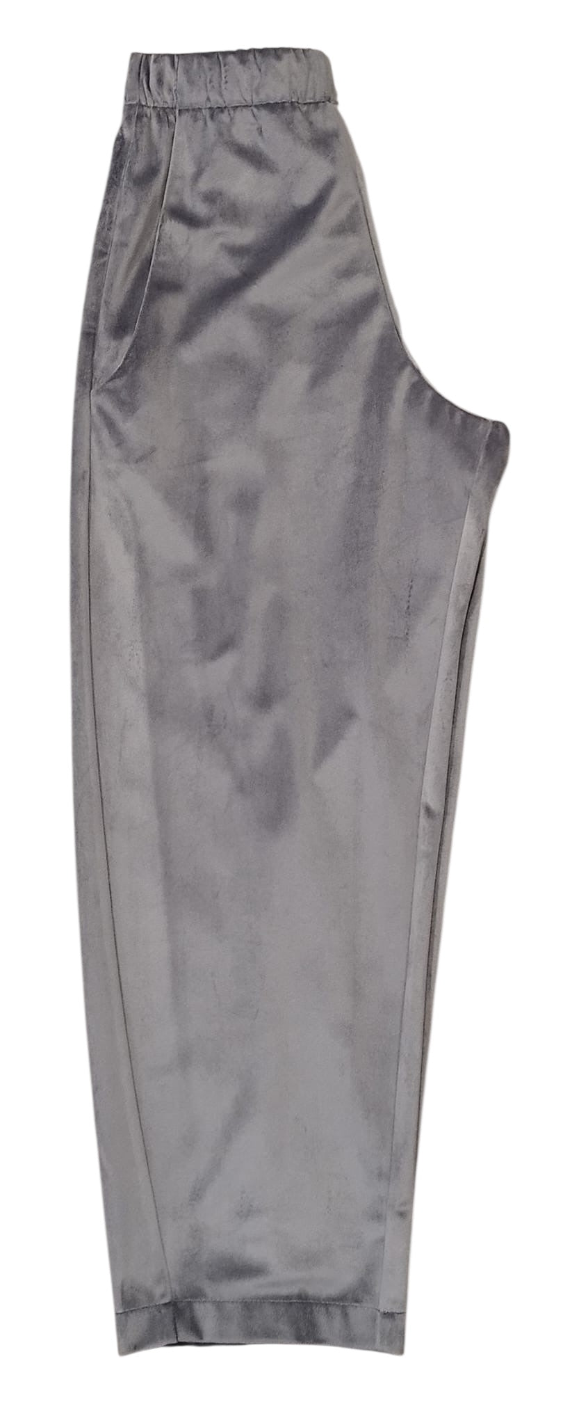 Pantalone Baloon con elastico in vita, tessuto velluto, tasca taglio vivo. Debora indossa la S