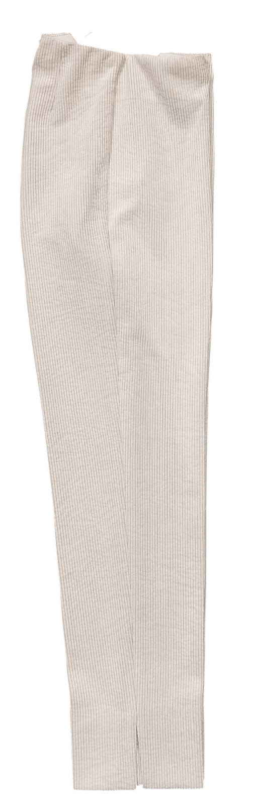 Pantalone in velluto con elastico in vita e cerniera, gamba stretta con spacchetto laterale